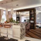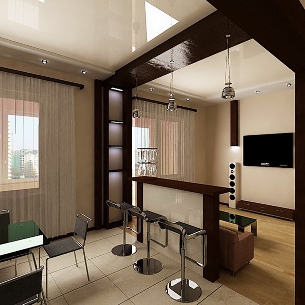 - Bar counter. An indispensable piece of furniture for a modern stylish interior. Advance it is necessary to take care that the design of the bar counter matches the main interior in material and color. The table top can be selected from wood or high-quality MDF. Wood can be varnished, and the MDF table top looks good in a glossy finish.