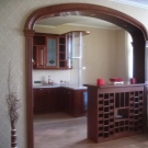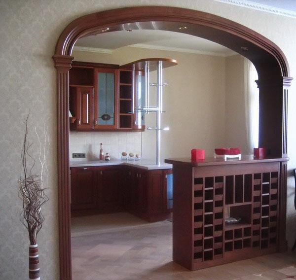 - Partitions of different materials. Often there are drywall and wooden partitions. Depending on the space and style, you can choose the options: arch, straight or other unusual forms. The arch variant will allow you to gently separate the two zones, if you install spotlights in the thickness of the structure.