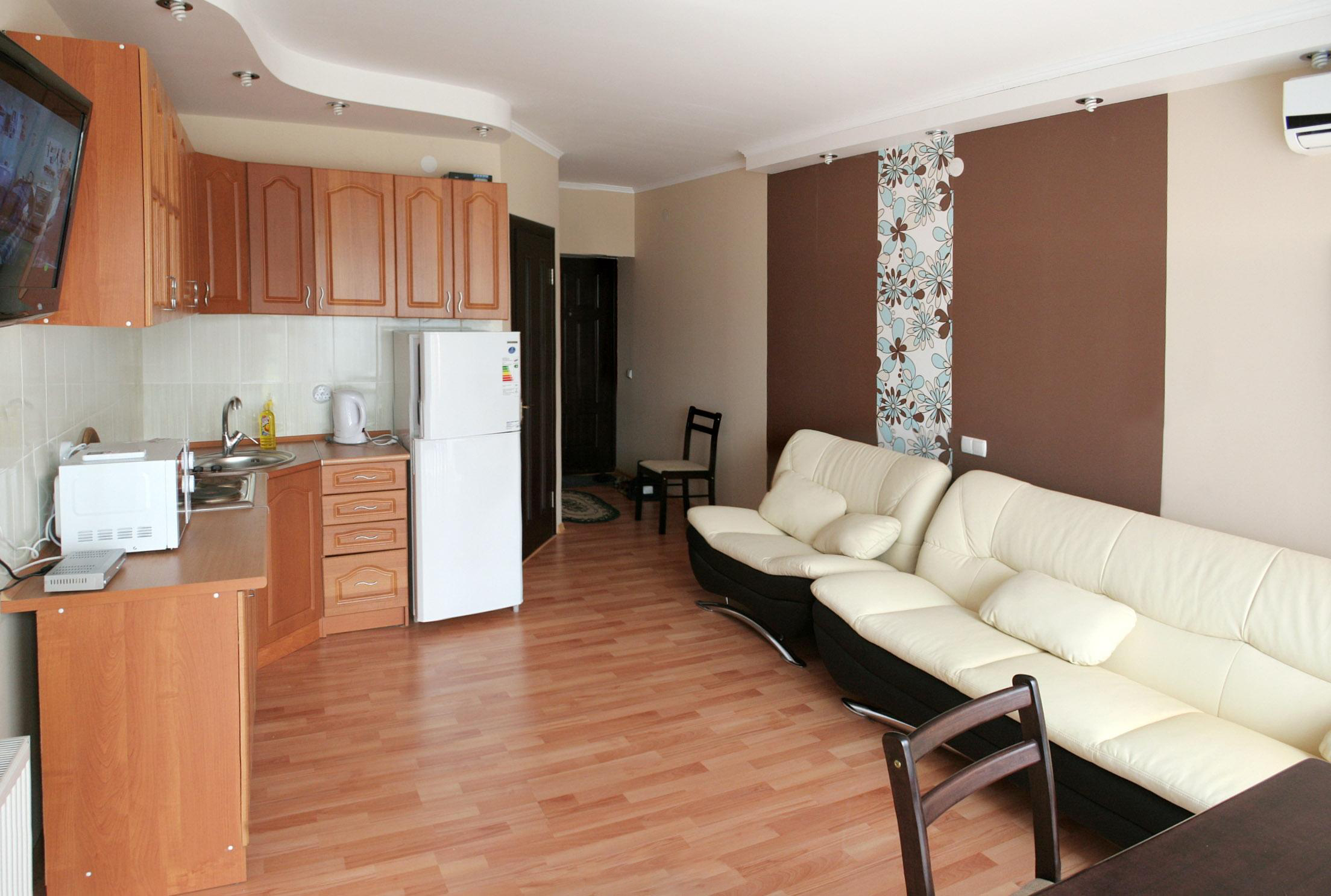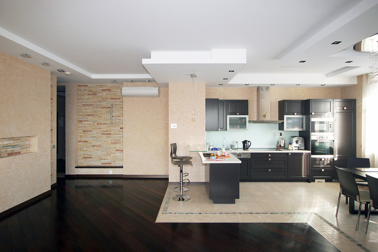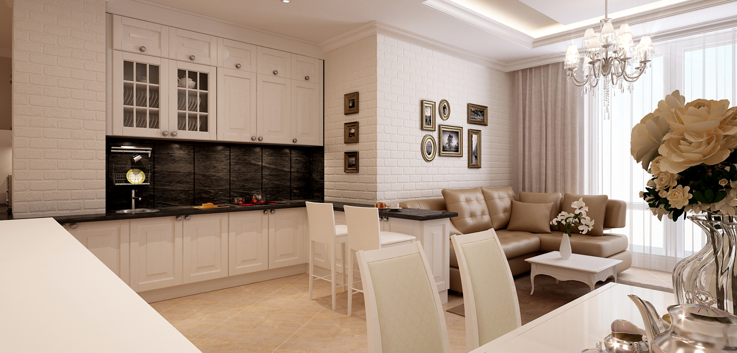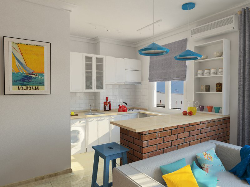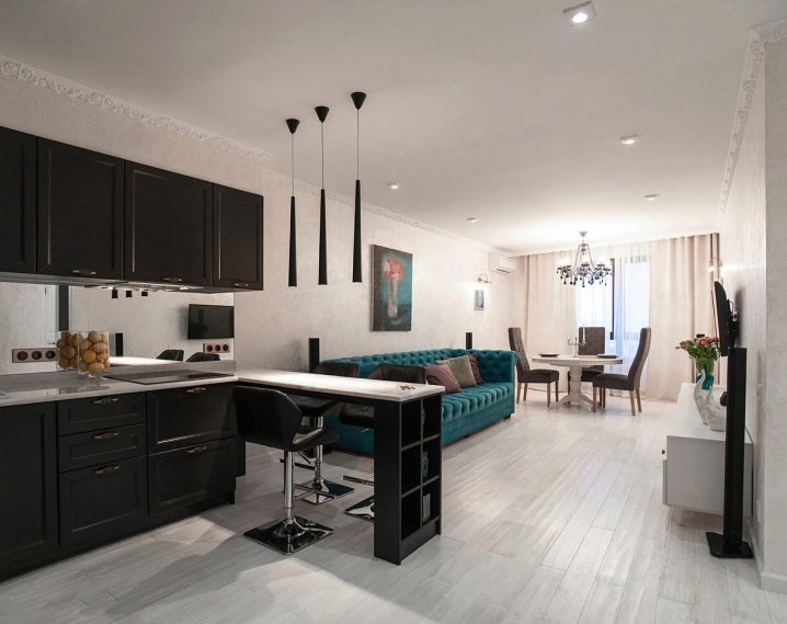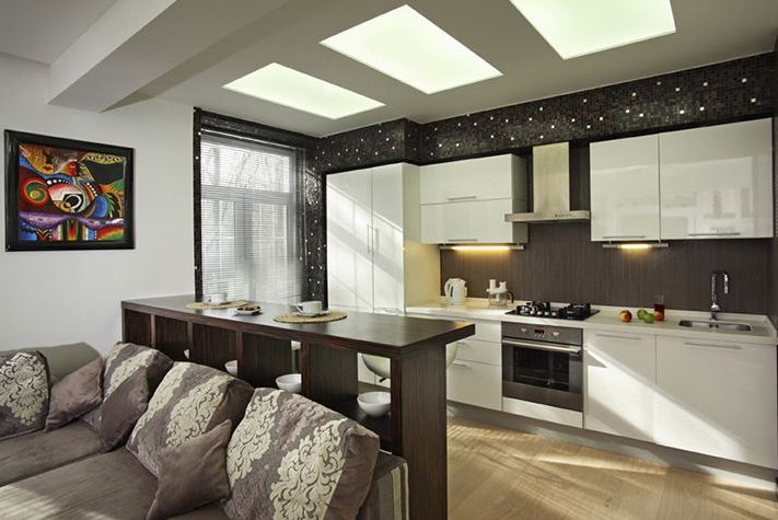 In modern apartment planning, it is not always possible to allocate each important housing area a well-deserved space and properly equip a room. Most often, the kitchen area is small and inconvenient. To increase the space of the room and get rid of partitions, combine rooms. This location can be created independently or buy a studio apartment with a free layout. The common space often combines a kitchen and living area - this is called a kitchen-studio.
