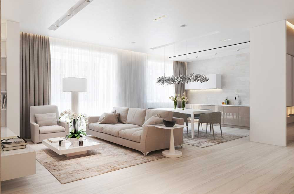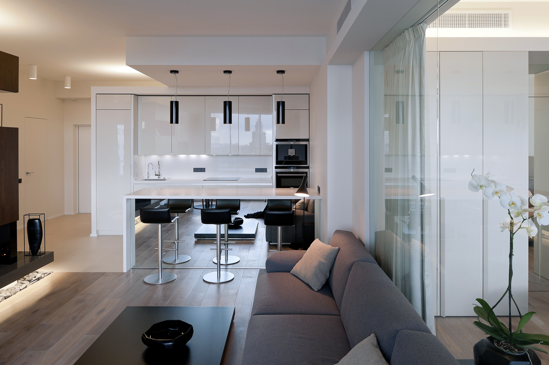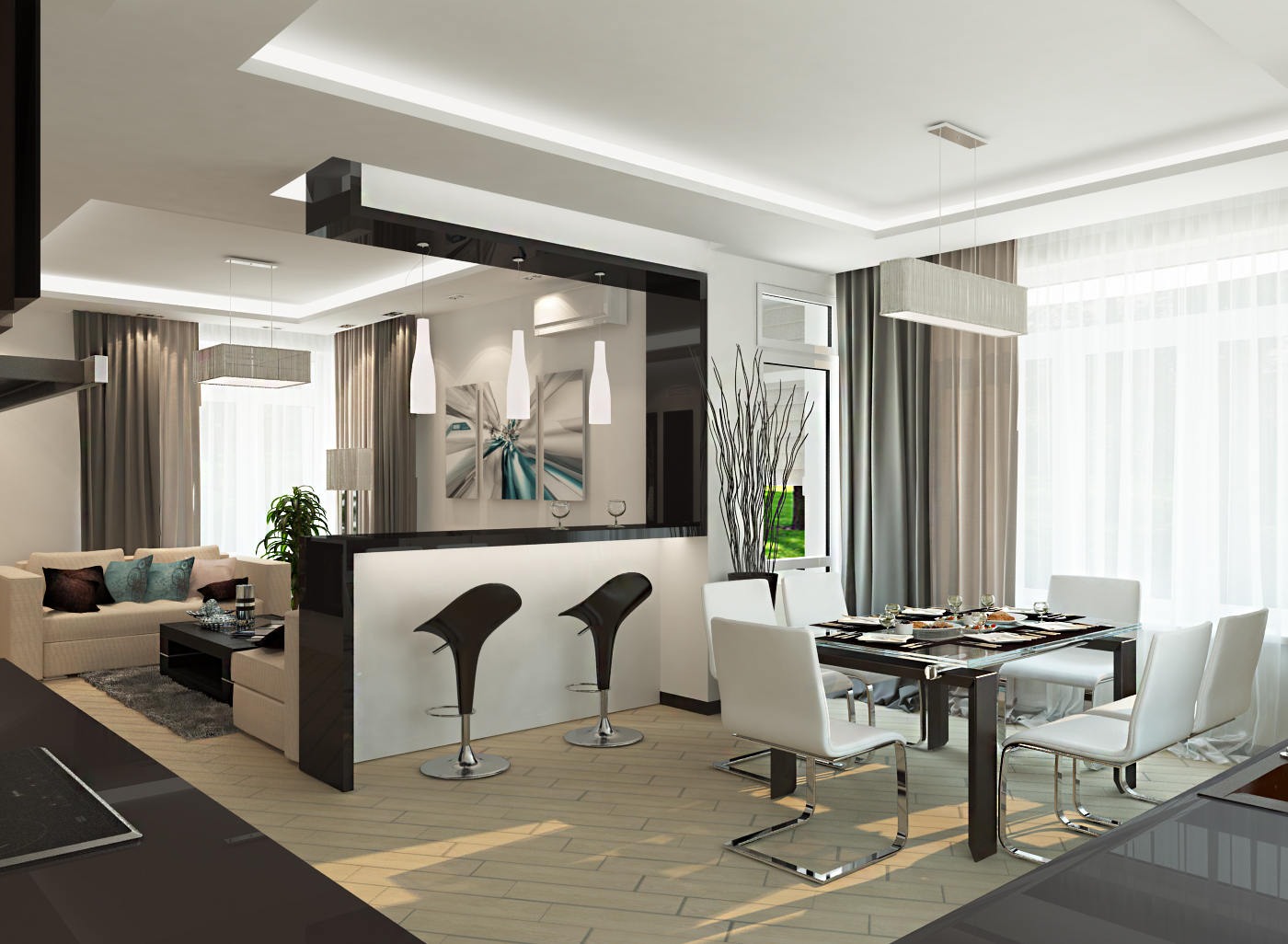 Separating, for example, a dining area in terms of an apartment will allow a group of friends to gather at a delicious dinner. Cooking zone - for gourmets and cooks. This layout will allow you to observe the masterful preparation of a delicious dinner. Living room - for a comfortable stay. The correct choice of the main space depends on the owner's lifestyle, love for noisy companies or family gatherings, cooking.