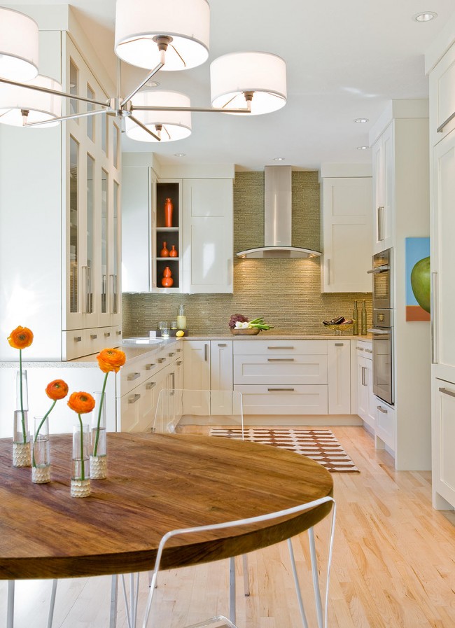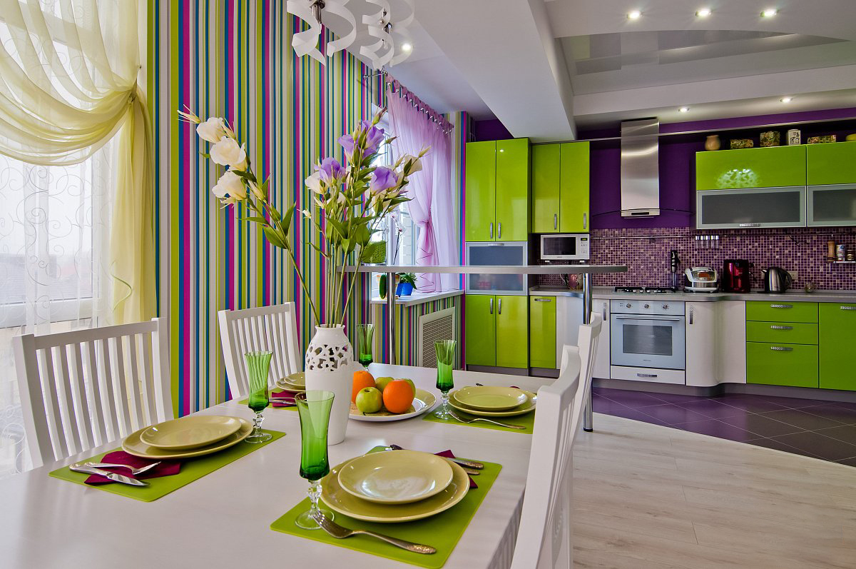 But do not forget about the reasonable use of different colors. The combination of three or more bright contrasting colors in the finish will create a fractional impression. Maintain the color of the main area of various decor items and kitchen utensils.