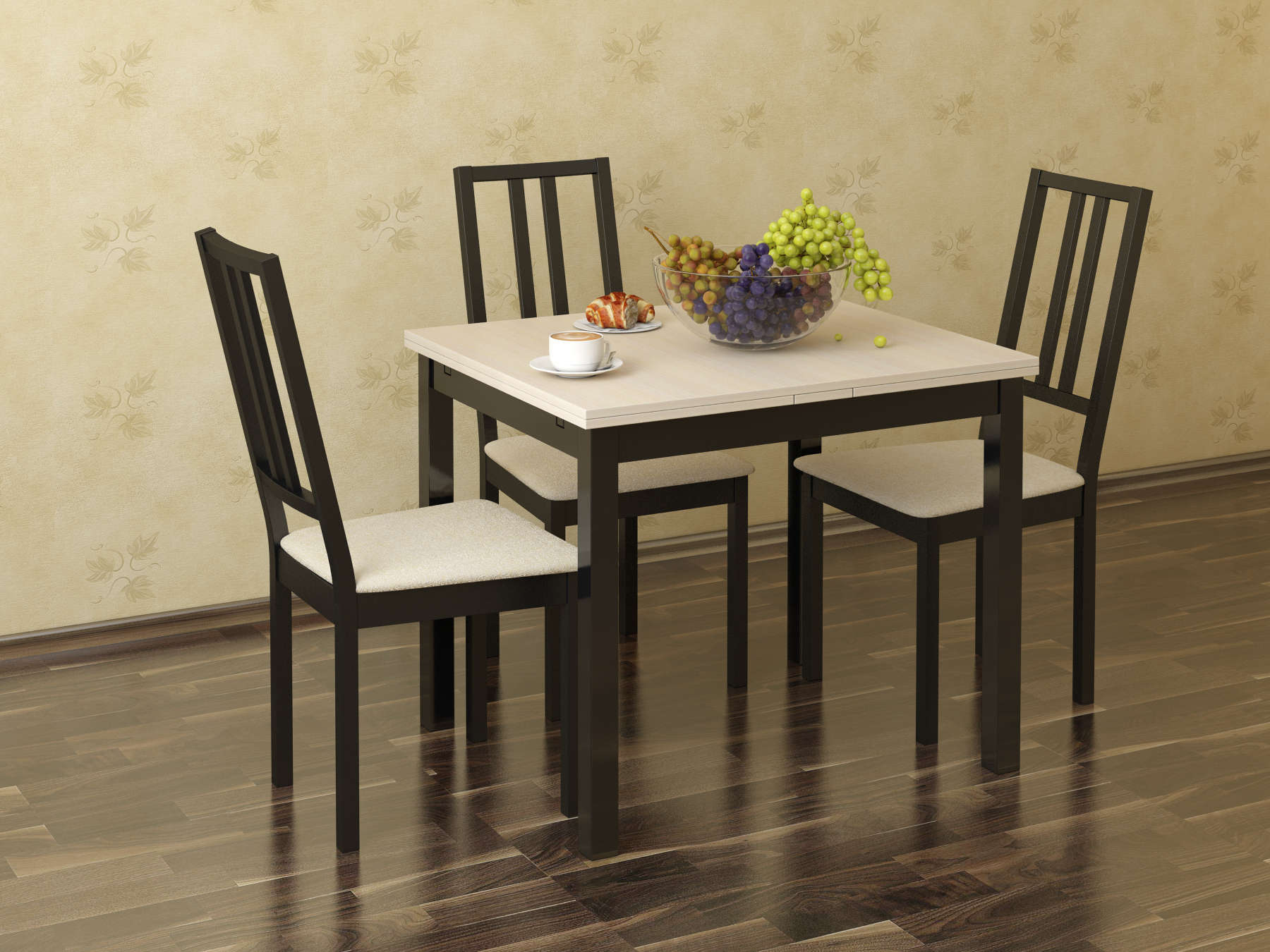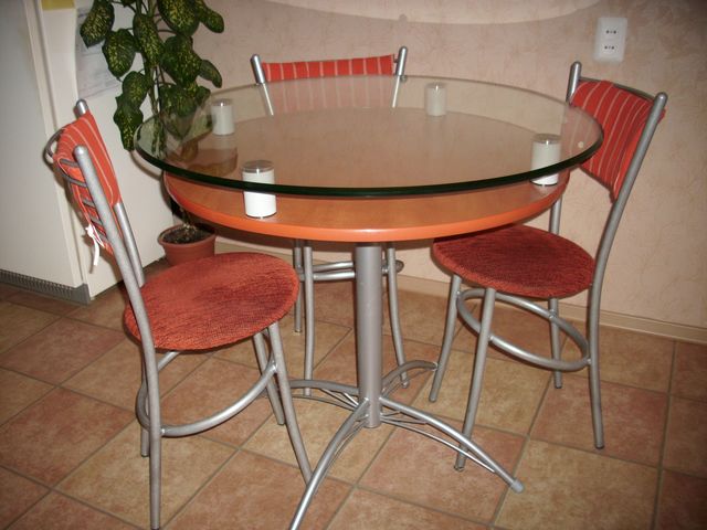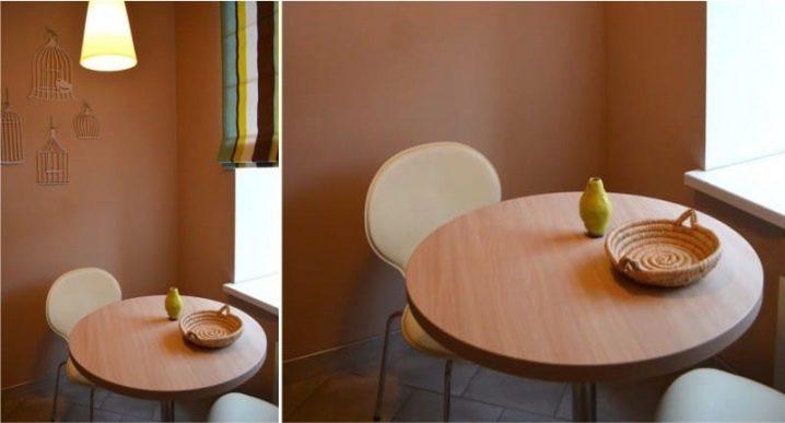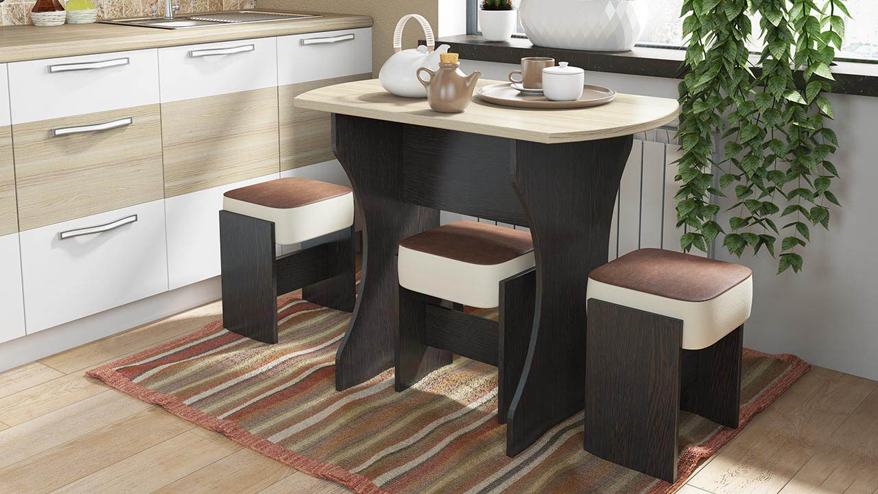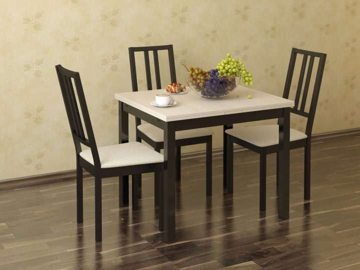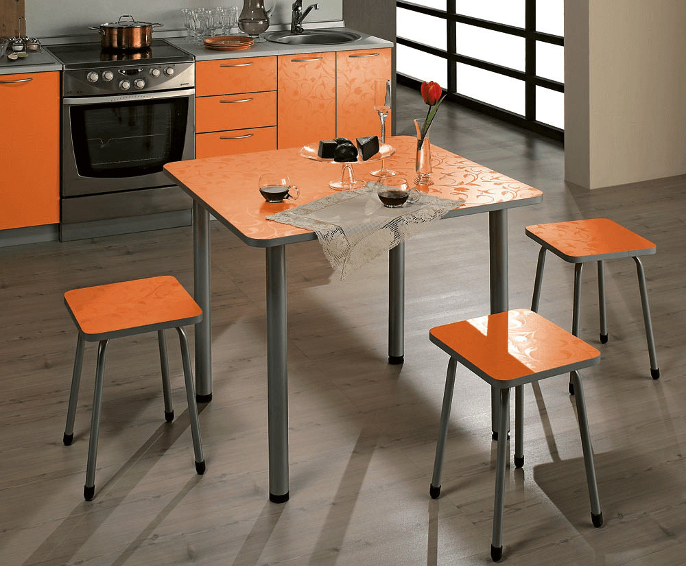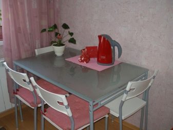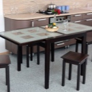 If for some reason the table-chair set option is not suitable, then the table can be combined in color with any other elements of the kitchen decor, for example, with a kitchen apron, wall covering, etc.