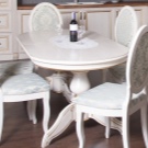 In addition, these models have a number of functional advantages: behind them it is possible to place more households, and the absence of corners makes this furniture less traumatic. The only significant drawback of round and oval tables - they can not be placed close to the wall. Therefore, it is not advisable to include such furniture in the kitchen if the area of the room is less than 9 square meters. meters