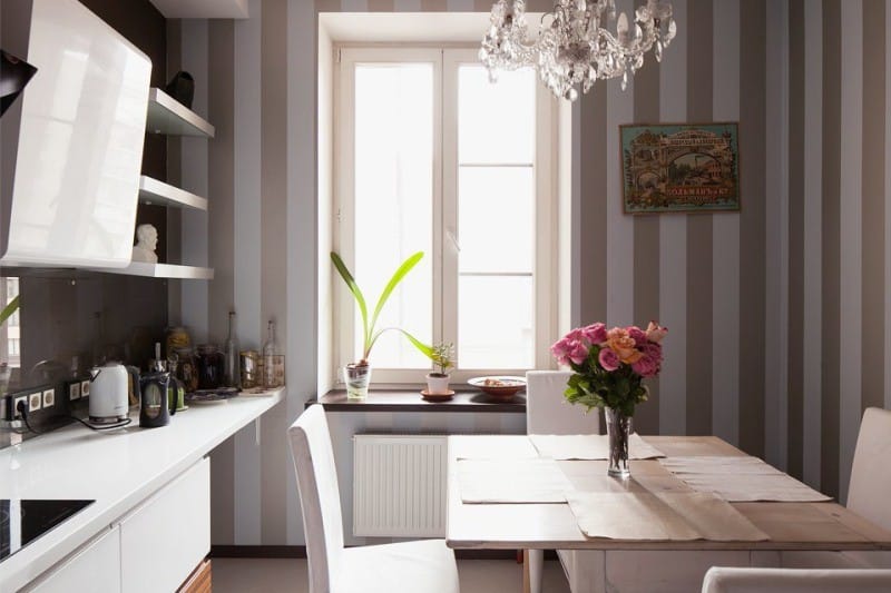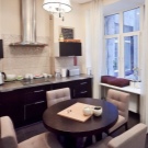 And with a competent zoning of the space, the kitchen table with rounded corners has every chance to organically fit into the studio apartment.