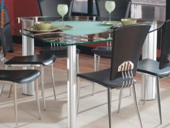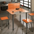 Also in the selection of kitchen furniture, you must pay attention, in addition to the shape of the countertop, and its support. So a table on one leg looks very elegant and modern. This option is optimal if the tabletop is round. Convenience is that at a table on one leg it is comfortable to sit anywhere. However, as a rule, such furniture is made only in miniature size.