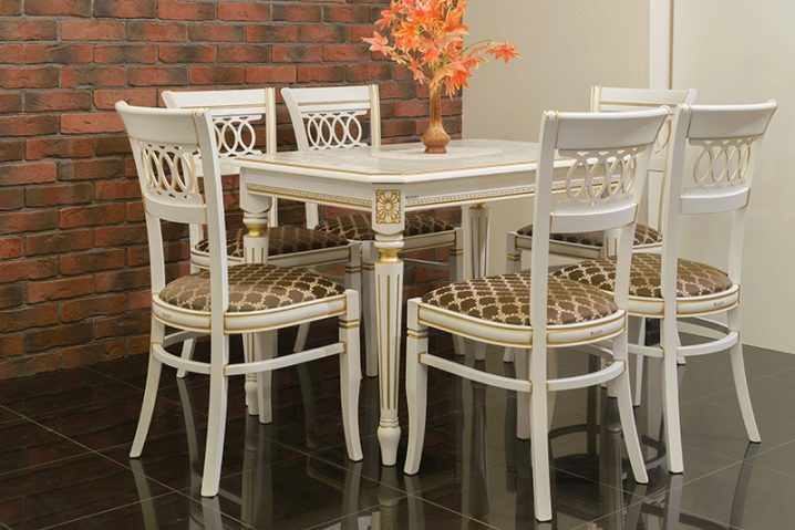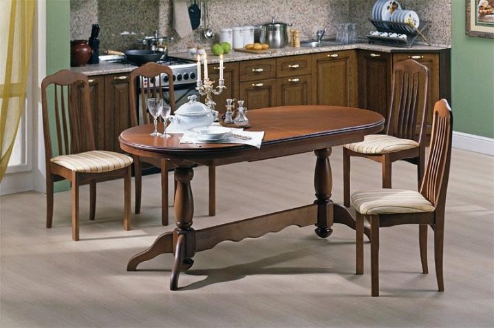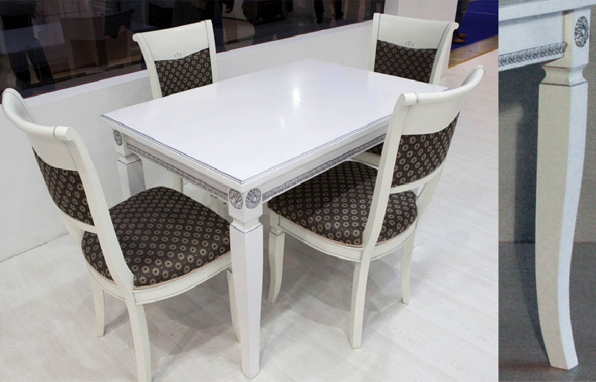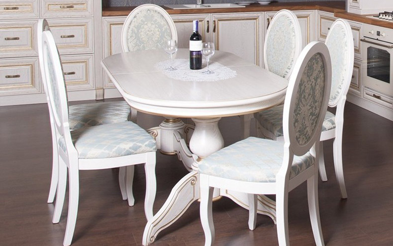 In the kitchen with a classic interior harmoniously infuse models on four massive legs. Elements of carving, especially on an oak table, will look very useful on such furniture. Also chairs or armchairs with Viennese legs will wonderfully flow into this style.