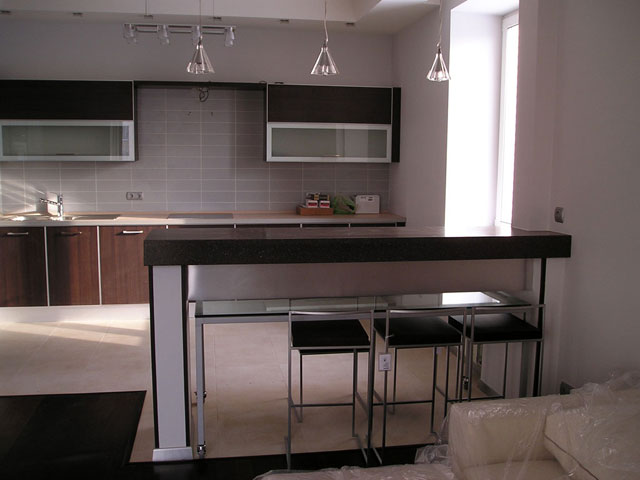The bar counter is a great option for small apartments and studio apartments. As a rule, in these cases, the bar version of the table performs the function of both a serving and a dining table, allowing you to significantly save space.