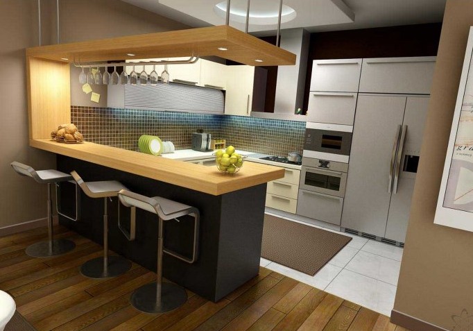 It is very fashionable to use the bar counter instead of the usual dining table when designing the kitchen space. This option looks very modern and original.