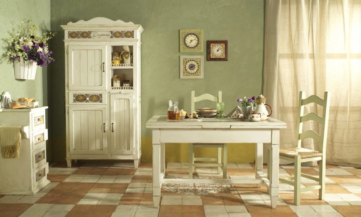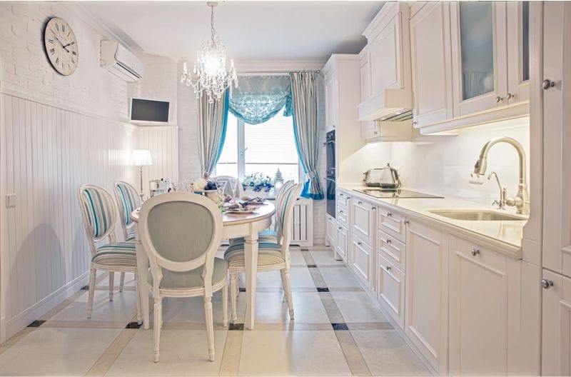 For the dining area in the Provencal style suitable furniture made of natural wood. It is better that it was a natural color or was artificially aged. Very well in this interior will look white wooden table without decorative elements.