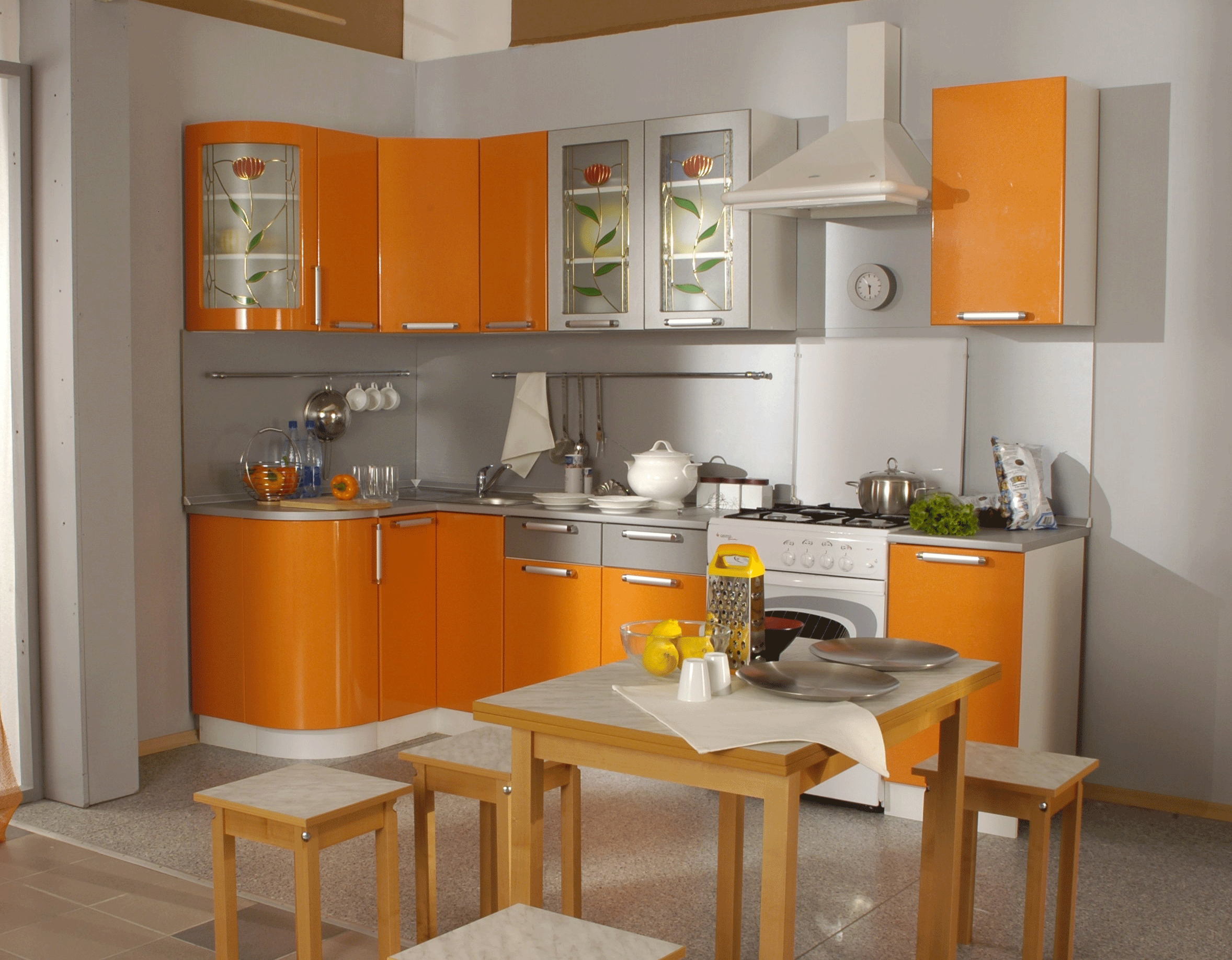 Russian kitchen furniture, due to the absence of different margins, is the cheapest. It is made taking into account domestic realities, its range is quite wide.