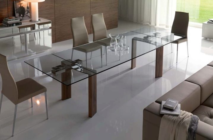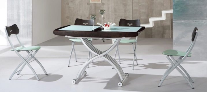Transforming tables are in great demand today. Due to the complex design and a diverse set of mechanisms, they can, if necessary, be folded, unfolded, changed height and shape. Such folding tables can turn from full-fledged dining sets into miniature coffee tables.