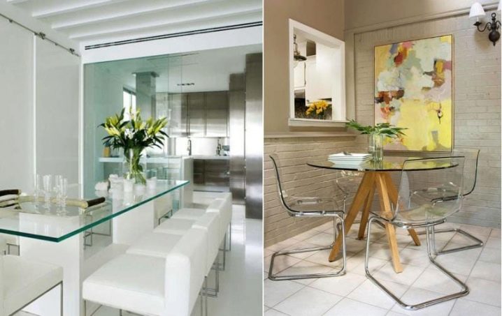 Tables made of glass or transparent plastic look very original and modern. In addition, the glass worktop visually reduces the actual space occupied by the furniture. This happens due to the transparency of the surface and the lack of clear visual boundaries. Such products seem very light and weightless.