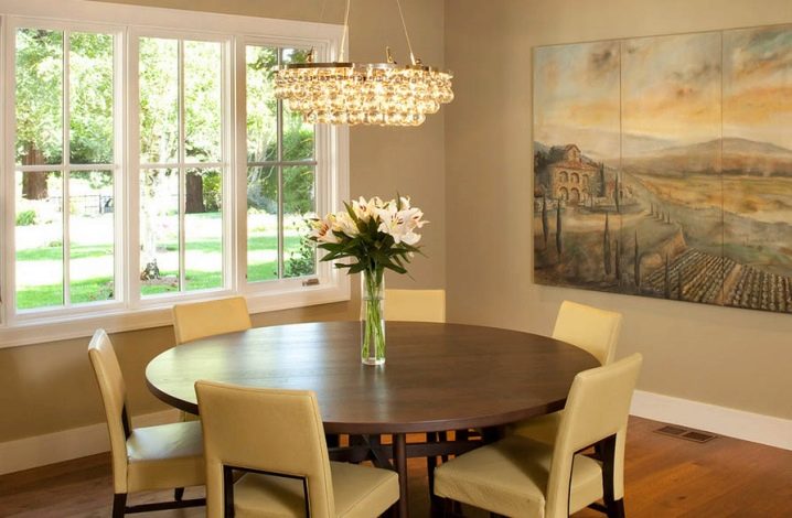 Round table is suitable for a spacious square kitchen. At the same time it should be set in the center.