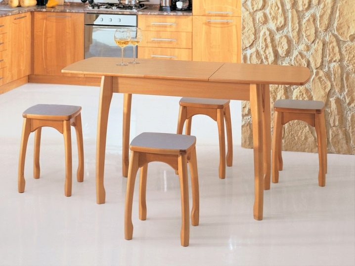 Firstly, it is important to choose a model that is suitable for a particular area and shape of the room, corresponds to the style of the kitchen as a whole, and also satisfies the individual requests of the owner. Further, depending on how many households or guests are planned to be placed, the size of the table is determined.