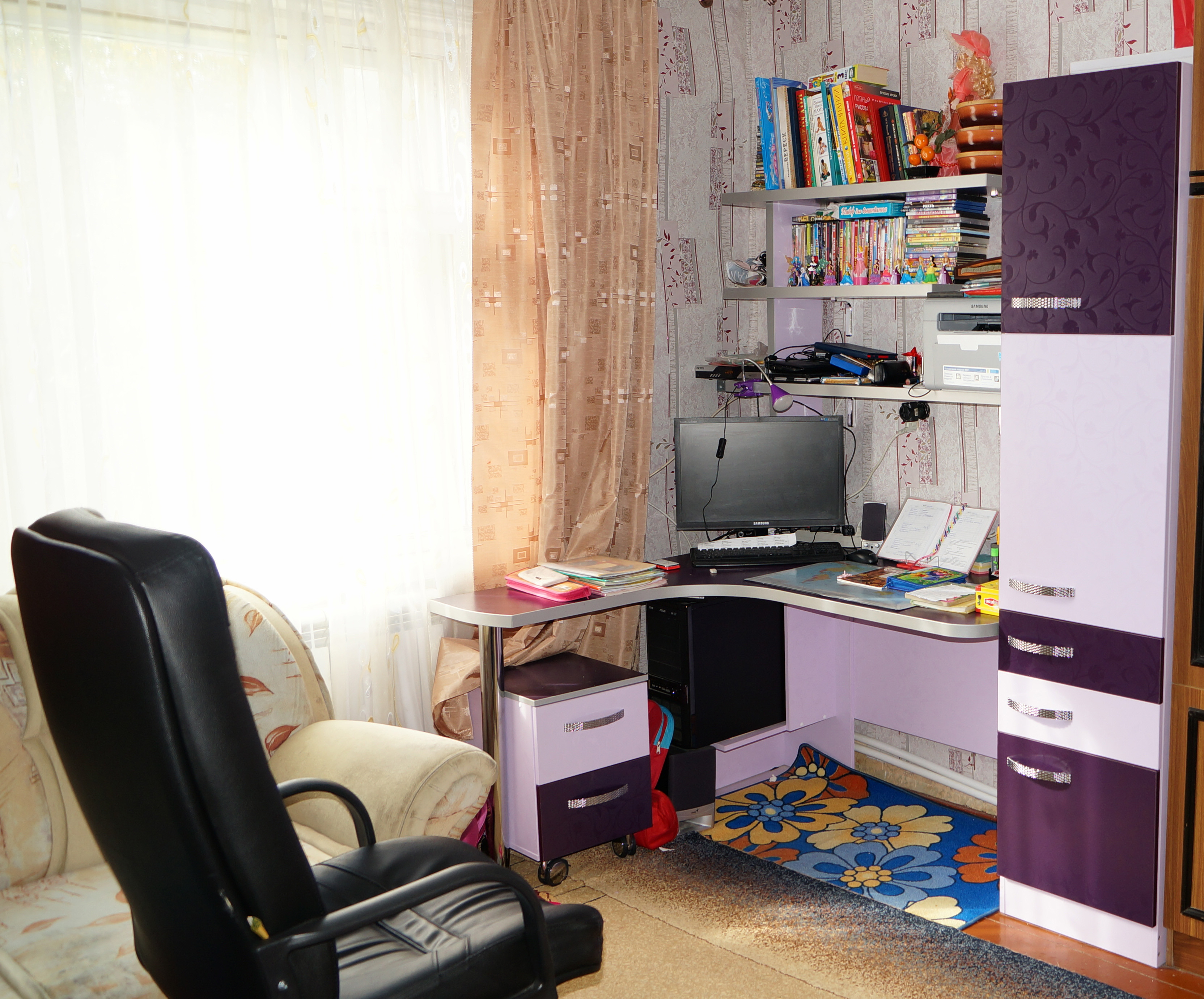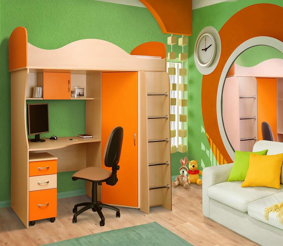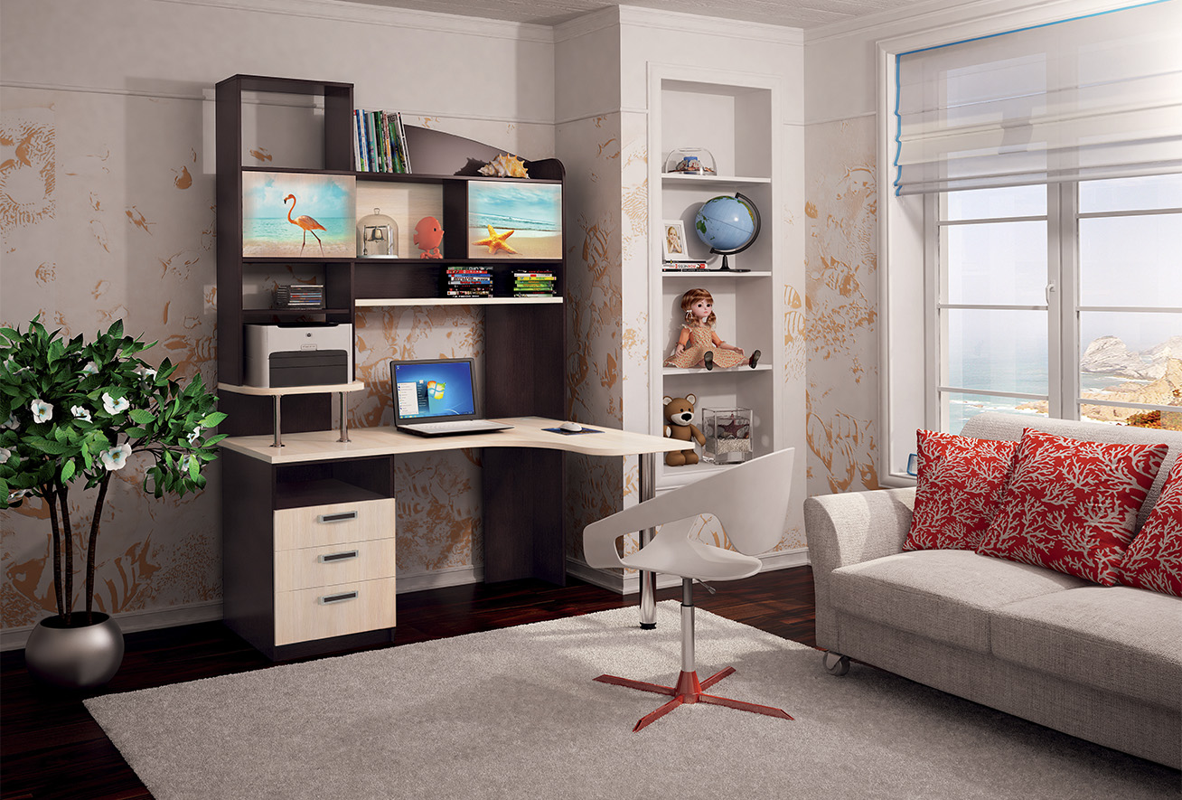 Like all the furniture in the nursery, the computer desk is better to buy from natural solid wood. It will be durable, will not cause allergies in the child, will not “ban” the air in the room, make it easy to breathe.