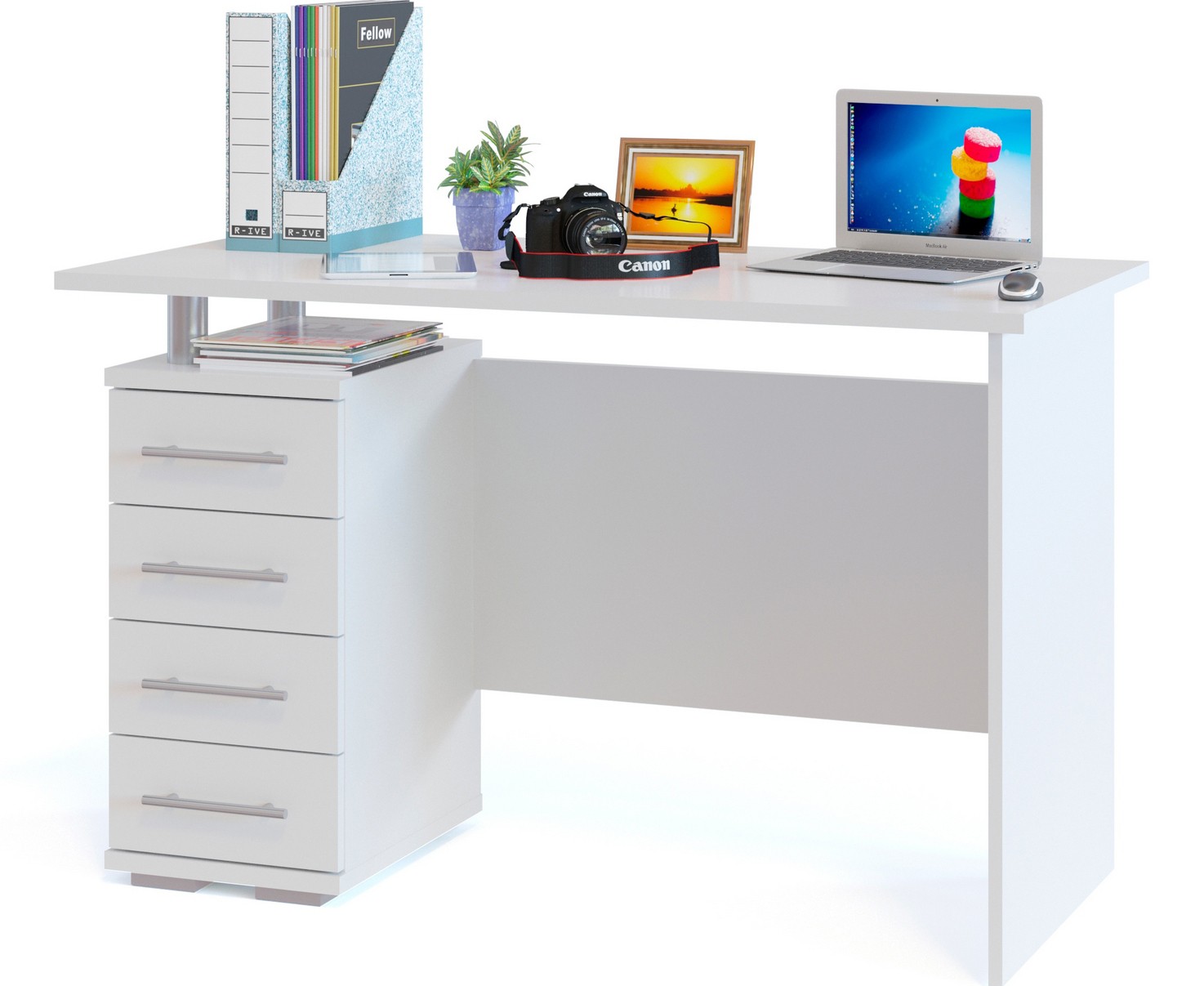 Schoolboy - Class-M. This model is very similar to the previous one, but has additional shelves for storing books and CDs. The dimensions of this table are 60x125 cm, the color scheme is identical to the previous model. But there is an opportunity to choose the facade of the boxes with photo printing, which looks very stylish.