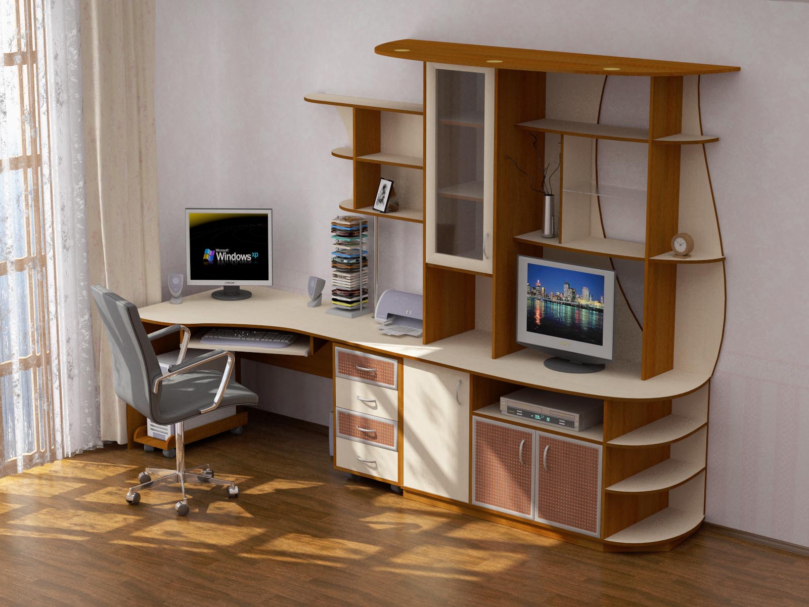 Standard brown and beige shades will be most suitable for a computer corner.