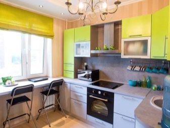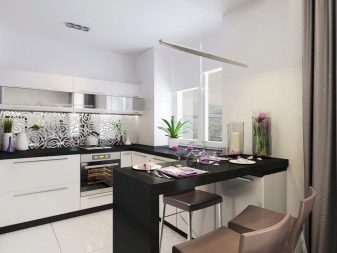 A bar counter instead of a dinner table is also a good option. She does not bad zoning the kitchen space, and with proper layout allows the whole family to sit comfortably.