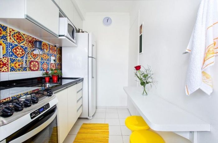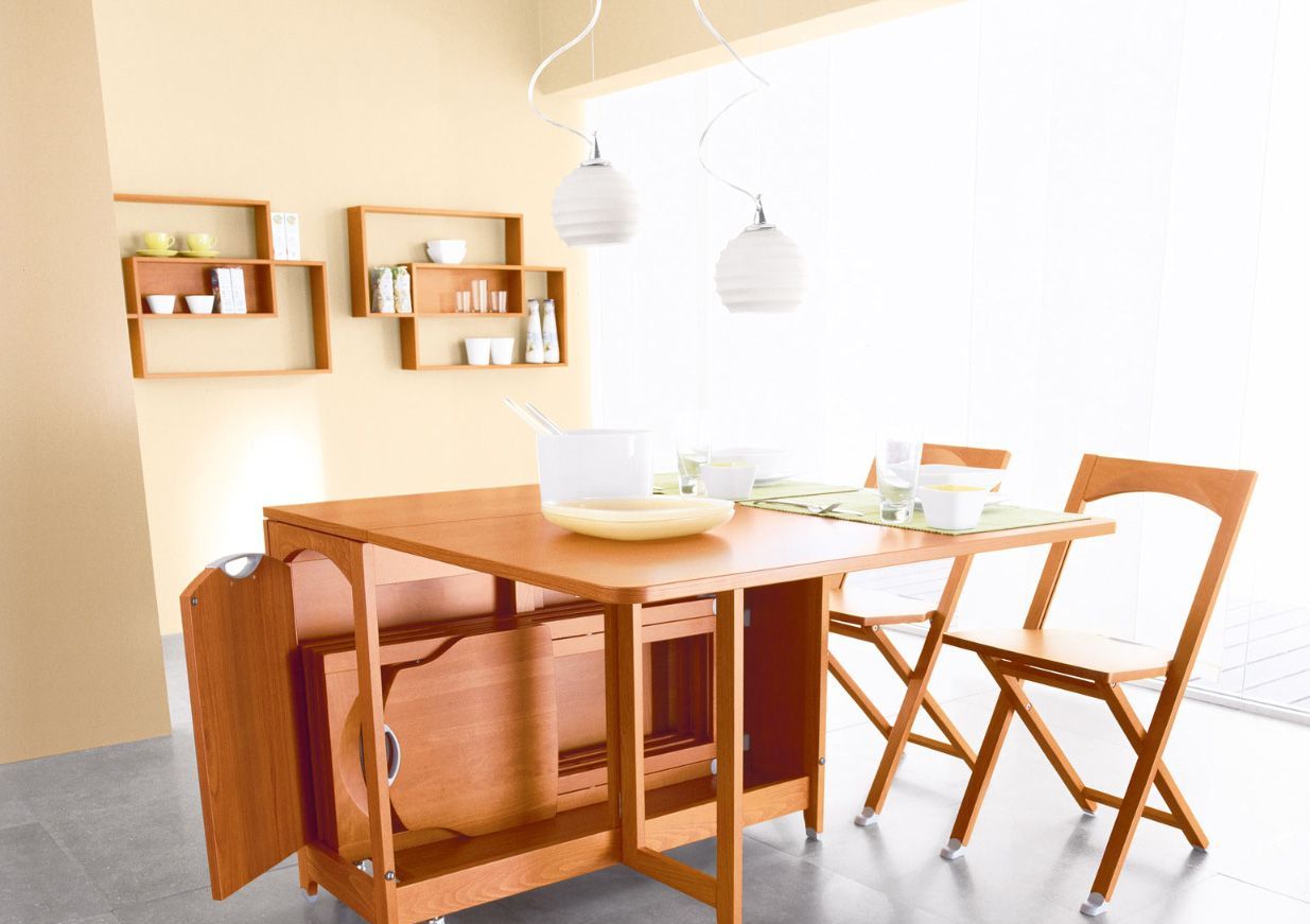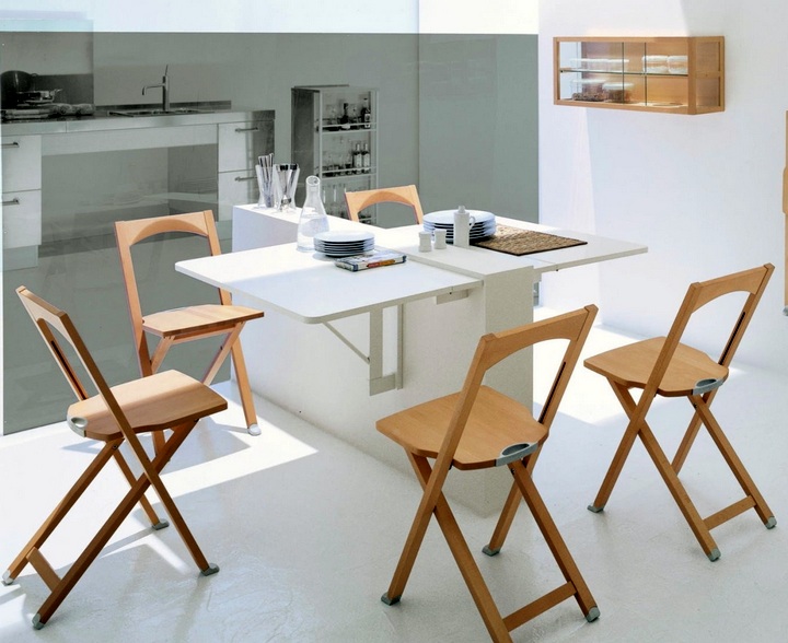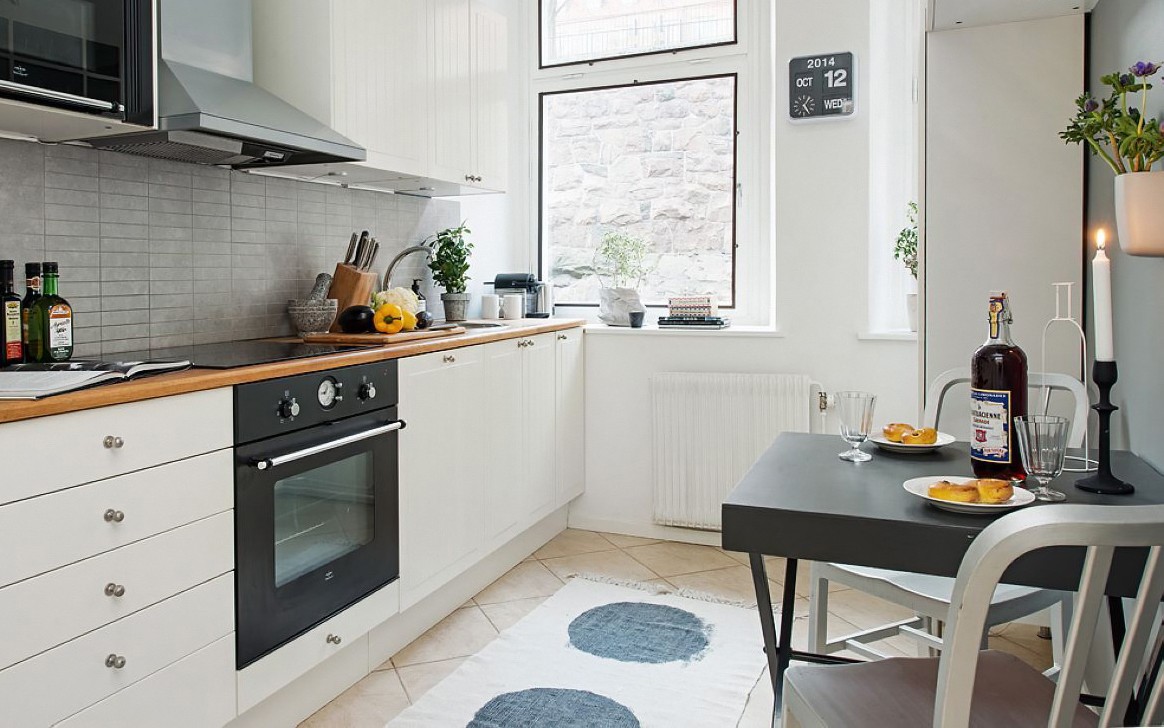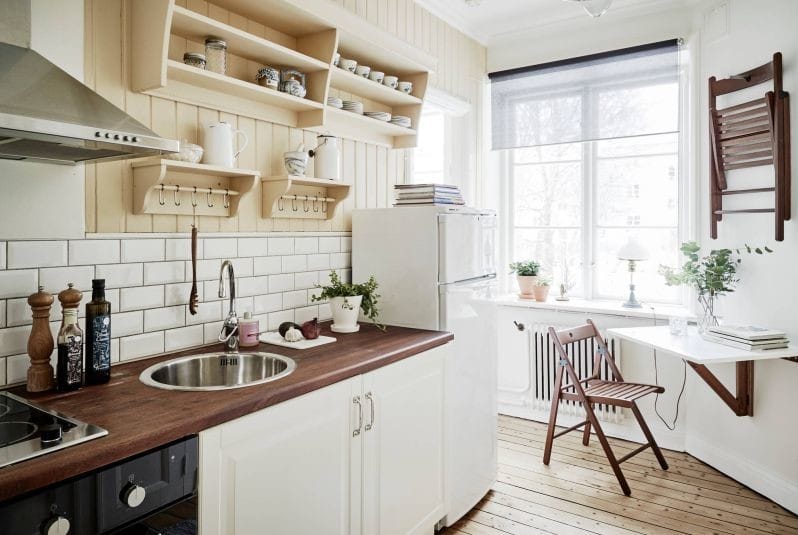 A few more tips for successfully fitting a small kitchen table into a miniature kitchen area: