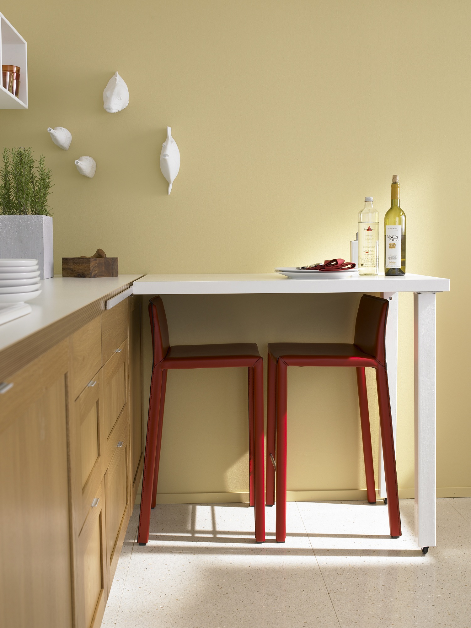 Very popular and small square tables, 50 cm wide, which fit well between the kitchen bollards and, if necessary, can be easily combined into a common work surface.