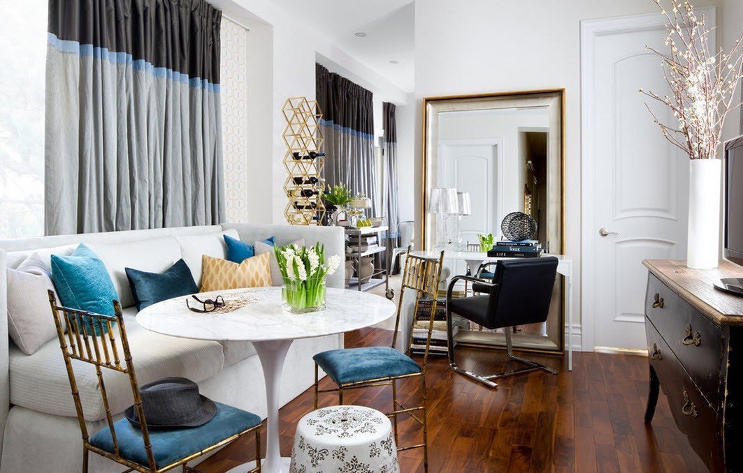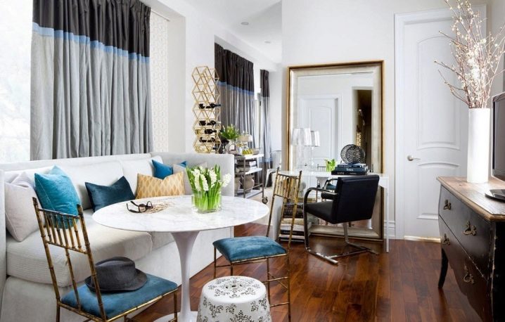 - instead of a rectangular or round table, choose the one that moves closer to the wall or becomes more compact at the corner (square, oval or semicircular shape),