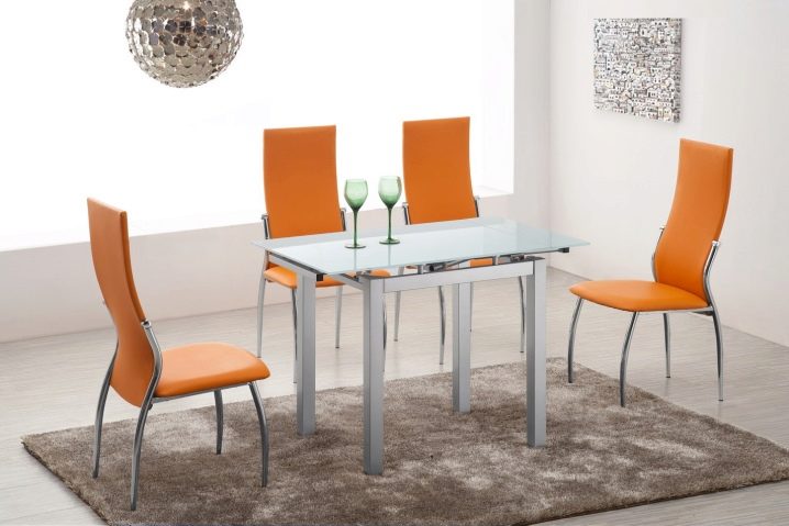Sliding glass tables can be doubled and even doubled - as far as the length of their guide profile allows. The transformation is not difficult - the table top slides freely along the guides, just pulling on it a little, so only one person is needed for assembly and disassembly.However, such glass tables are often heavy, and if they are not equipped with wheels, then it is difficult to carry them yourself. In addition, they are less durable than wood, and their countertops do not tolerate shocks and severe mechanical loads. In addition, high-quality tempered glass sliding tables are usually very expensive, which is also hardly a plus.