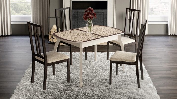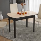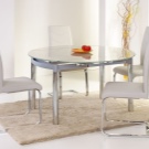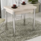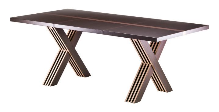 Extravagant models that fit well into the modern interior can be called kitchen tables with X-shaped legs made of square-section bar. Most harmoniously look angled legs and converging with each other at a point in the middle.