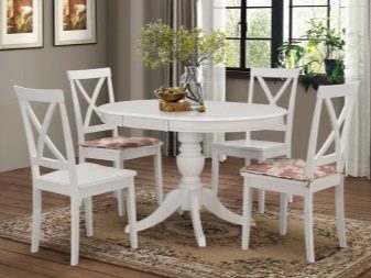 In the classic version, the kitchen table has four legs. Basically, these are traditional models with square and rectangular table tops. A three-legged table is almost always round. This may be a small coffee table or a full dining option. A table with two legs for the kitchen can be made in several forms, but most often there are models with two X-shaped legs or stable legs made of solid wood.