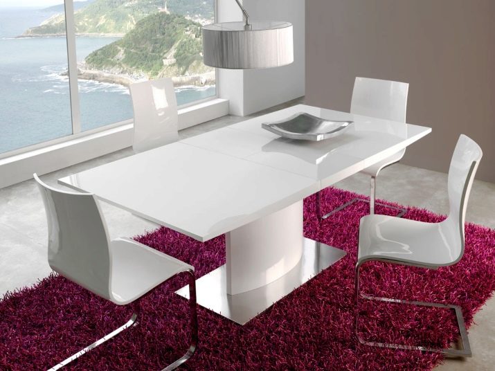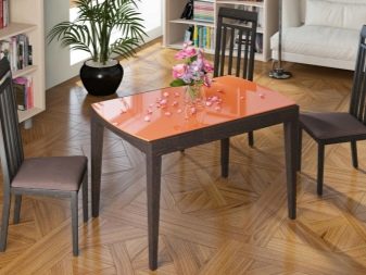 Particular attention is given to the legs, if they are under a transparent tabletop. In this case, all the splendor of beautiful legs is perfectly visible visually, so a creative approach to their execution is required. The support can be a metal box with a cross-section that is bent at an angle of 90 degrees and has a cross-section that plays the role of a central support. Luxurious design is obtained by using four elegantly curved legs, similar to the paws of insects.