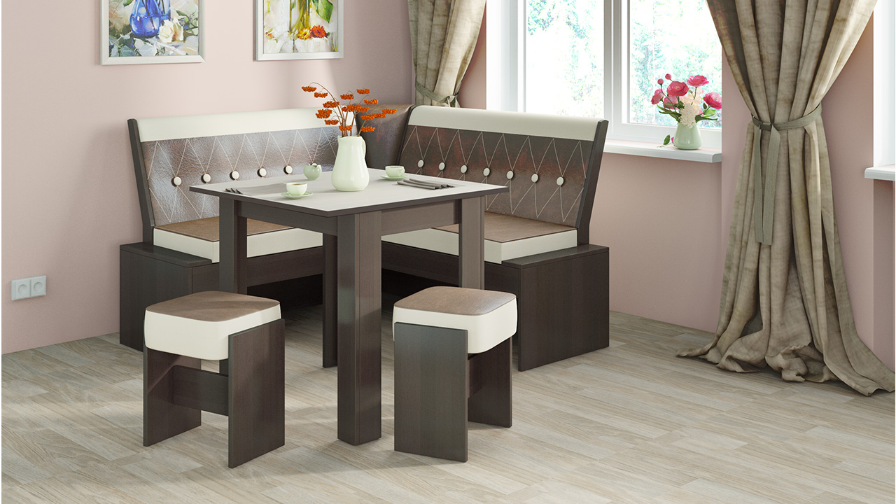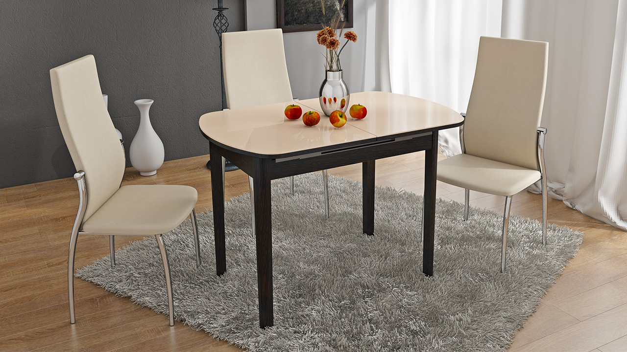 Tables made of natural wood - this is a classic and the oldest tradition of our country. Such furniture always looks very nice and expensive. Wooden legs for the kitchen table can be of various shapes: round, square or carved. Models with carved or chiseled legs are the most beautiful and graceful, and the overall impression of the furniture often depends on the skill of the craftsmen.Wood is varnished and polished; layers are made as long as necessary to obtain a beautiful smooth surface.
