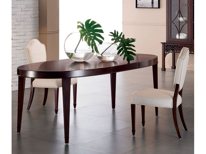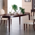 No matter how narrow the room is, the oval table should be located in relation to other objects centimeters 60 meters from them. Thus, when a person with an average weight will sit behind him, then there will be no problems with a free approach to any piece of furniture. Choosing this piece of furniture, you should always push off from the "permeability" of those people who have to sit behind him.