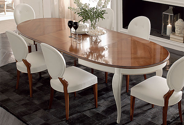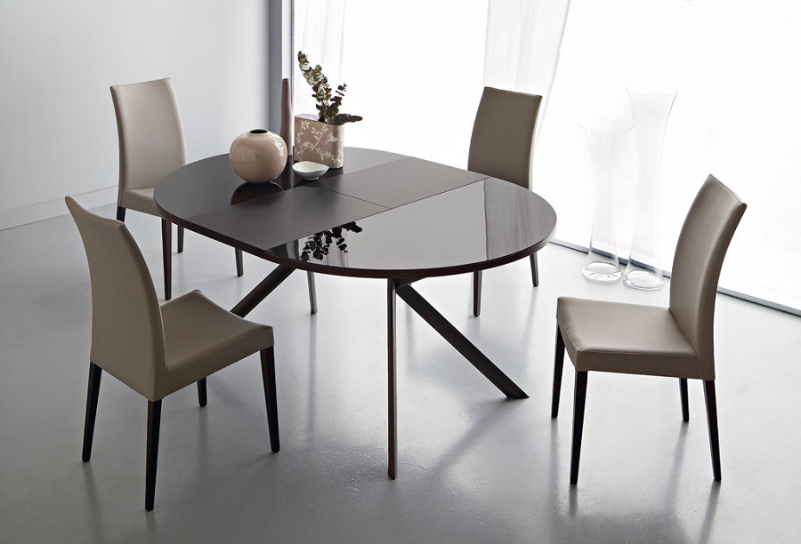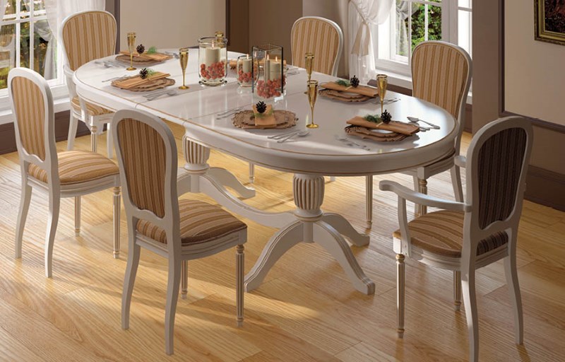 The presence in the kitchen of an oval sliding table allows you to make the atmosphere of this room warmer and more comfortable. You can always enlarge the tabletop to sit at the table with the whole family or with friends, which will always make the home environment more harmonious.