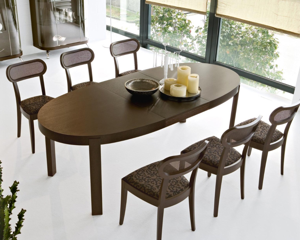 Oval sliding table for the kitchen - it is an indispensable thing for those who like to spend time at dinner as part of the whole family or often invite their friends to visit. What exactly the table will be is an important question, and you should be responsible for choosing it. Such a piece of furniture should not just fit into the overall interior, it should be the highlight of the whole decor. And the most important in this sense is precisely its form.