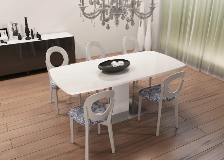 A sliding oval table in the kitchen should harmoniously fit into the overall interior of this room. The table should be selected in the same style as the rest of the furniture, and in the same color scheme. You need to pay attention to the design of the table legs, because their quality and style will largely influence how the kitchen will look in general.