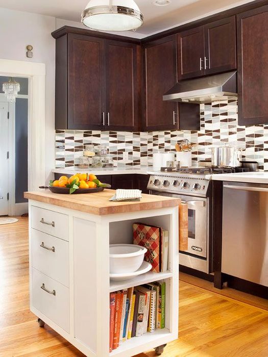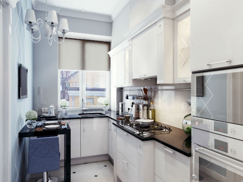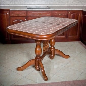 If you have a small kitchen, it makes sense to consider various folding options. For example lifting or sliding tabletop, retractable into the cabinet or table-book.