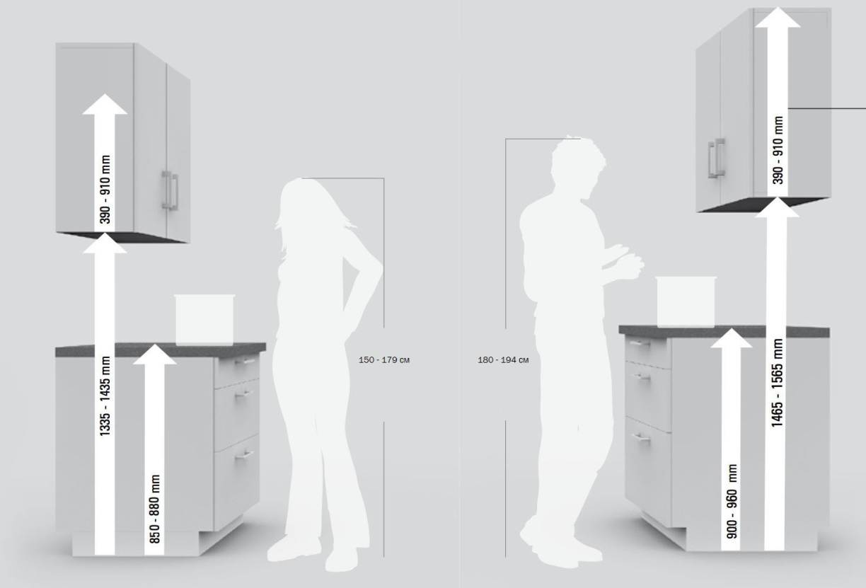 The height of a standard kitchen unit is 88-91 cm. It is designed for a person of average height from 160 to 180 cm.