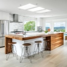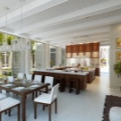 So, you started to create a project for the future kitchen-dining room. The first stage is the choice of its layout. We will talk about their varieties later. Next, you need to think about how you will produce zoning, i.e. the division of the kitchen-dining into working and dining areas. This can be done by placing between them one of the working surfaces, a bar or a large floor decoration, for example, an island decorative fireplace or a large potted flower.