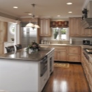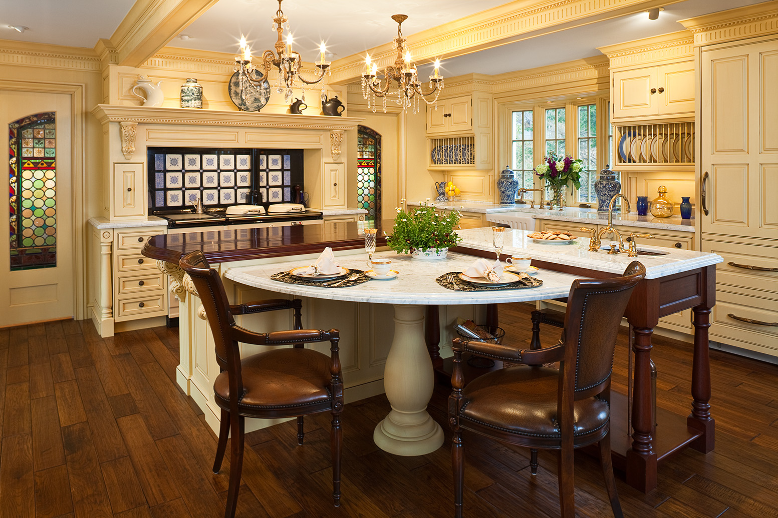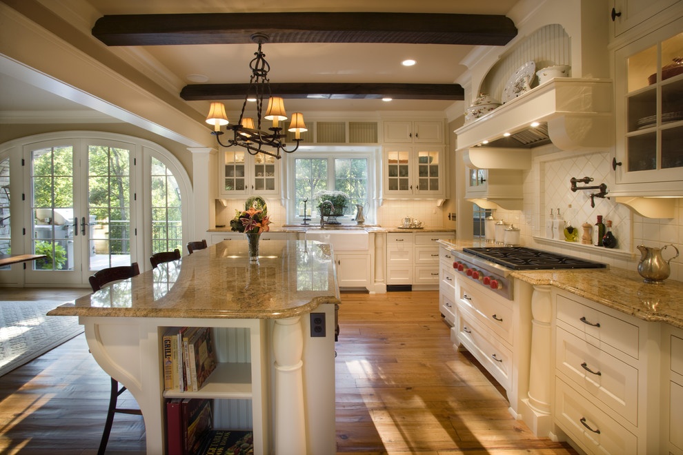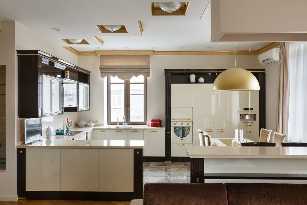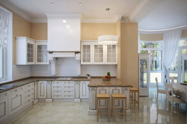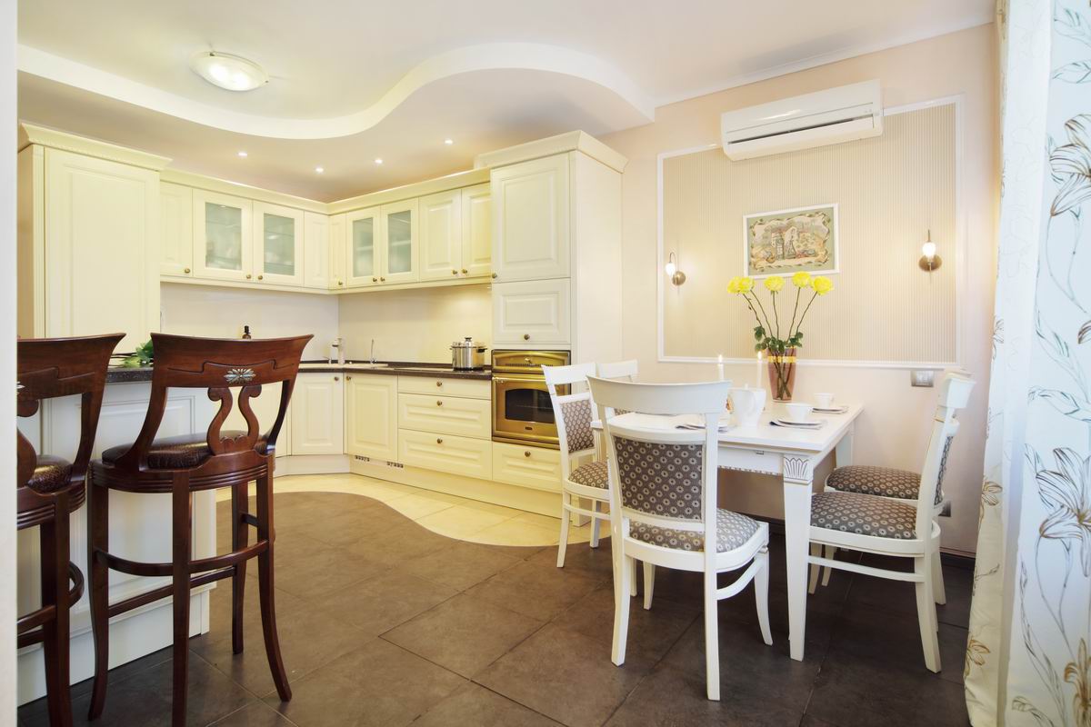 In any case, the furniture should be of high quality and expensive, mainly of wood. Household appliances - built-in, hidden from view. For lighting, use the chandelier, you can also place auxiliary lighting in the form of spotlights. The color scheme of the classic kitchen should be warm, without sharp contrasts and bright spots.
