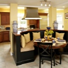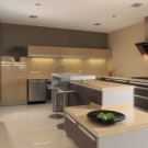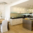 The design of the dining area is also very important. See which dining headset your big kitchen has more - whether it will be a table with a soft corner sofa or is it better to choose a set with chairs? What form does a table need? How to choose the right color schemeso that the dining area blends perfectly with the cooking zone? Do not be lazy to go shopping, look through the catalogs, consult with the designers - in general, think over everything to the smallest detail and proceed to the arrangement of your kitchen-dining room.