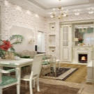 If you want to combine the kitchen and dining room, but at the same time differentiate them into zones, you can put a partition in the form of a bar counter or an island fireplace.