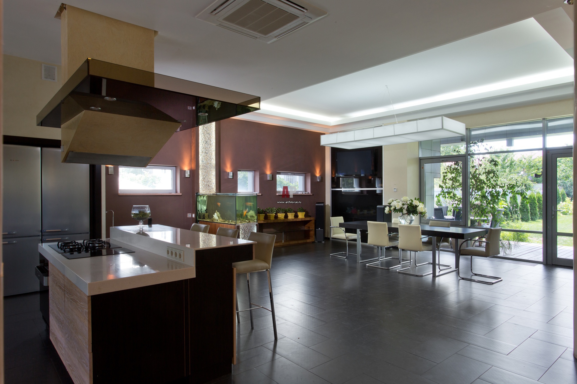 - Thirdly, in a large kitchen-dining room there is an opportunity to install all the necessary appliances, without fear that there will be little space for free movement;