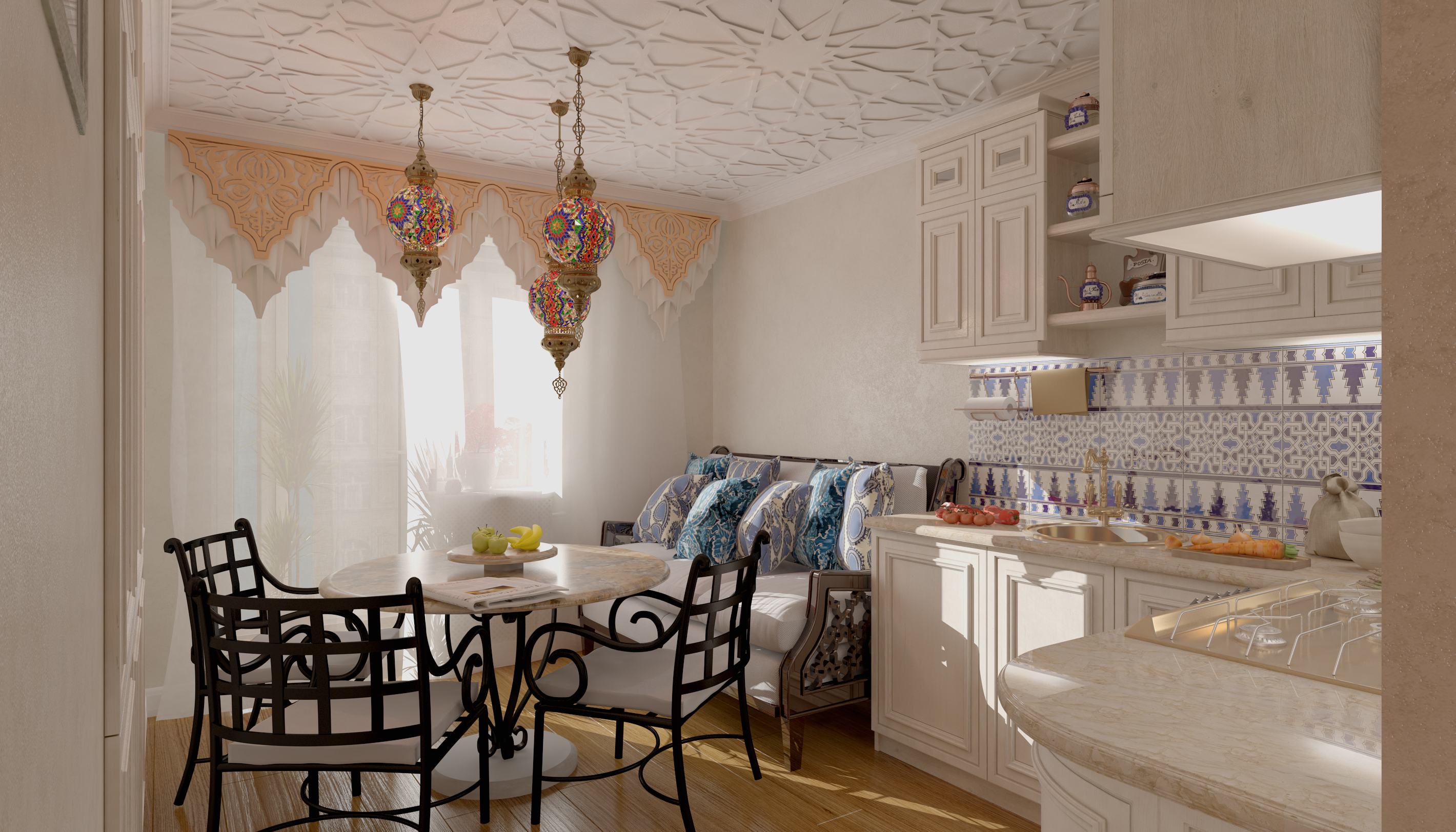 Equally bold and color range of this style.Do not be afraid to use bright colors - terracotta, red, mauve. Gold and silver must necessarily be present, at least in the form of spraying on decorative elements. Contrast colors are welcome - black and white. Lovers of quieter shades fit brown, beige, dairy, sand and ocher colors of interior parts and furniture.