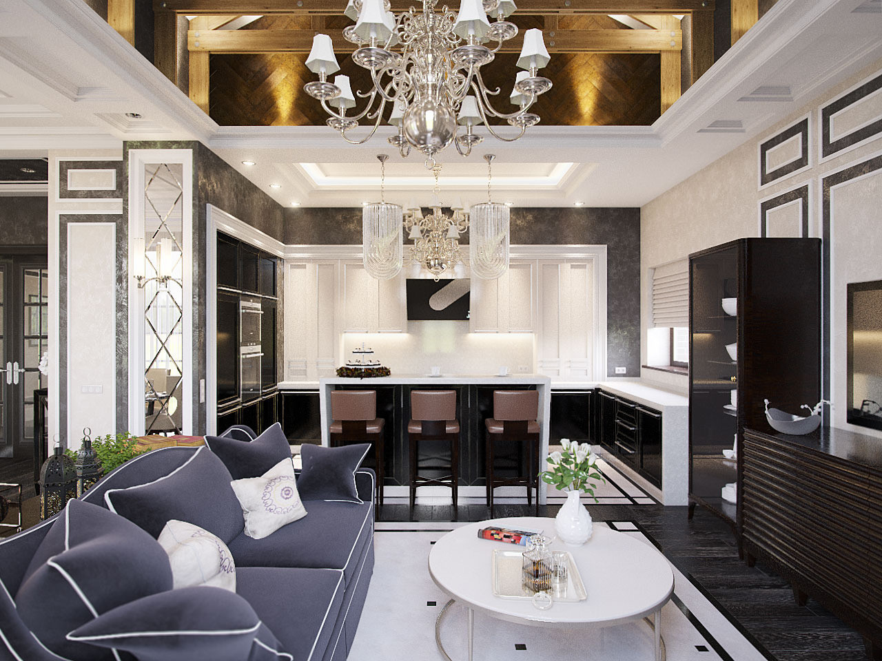 - Classic style. This style is very loved by people from high society. It combines comfort with wealth and charm. There are two areas of the classical style - artsy, with elements of palace chic, stucco, carving; and strict - with well-defined proportions, elegant lines. It is necessary to decide on the direction in advance.