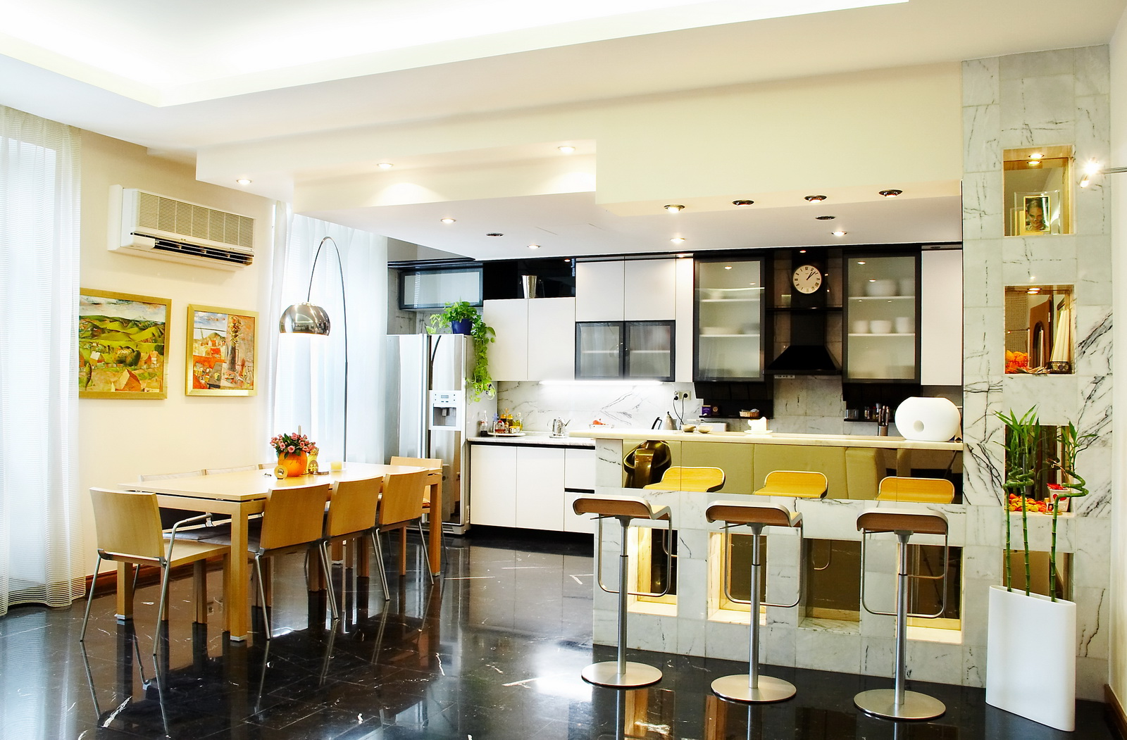 - Secondly, the combined kitchen-dining room seems lighter, it seems as if there is more air due to the increased space;
