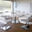Chairs tend to complement the round dining table. They combine comfortable soft armrests and back. Not to mention the pleasant shock-absorbing seat.