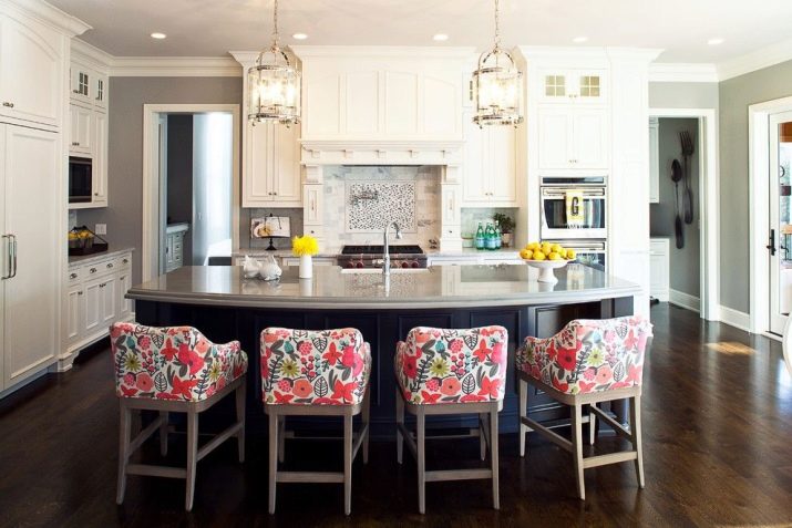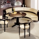 Semicircular at the peak of fashion, because they create a special design and give the kitchen originality. The main feature of these seats in a sophisticated form, where the back and armrests are made of a single element.