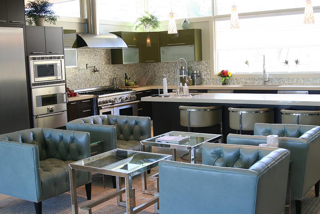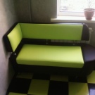 All materials can be divided into natural and artificial origin. Cotton, flax, silk are natural. Synthetic materials are very diverse, but for people prone to allergies, they should be avoided. Well proved chairs and couches made of genuine leather. They add luxury and nobility to the interior of the kitchen, at the same time leather cloths are not afraid of any fat, dirt or moisture.