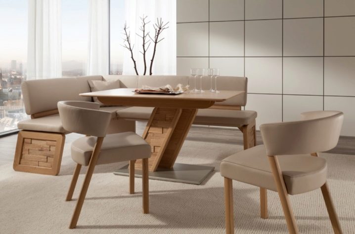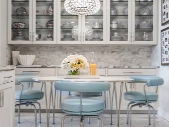 Not every kitchen has enough space to seat in it. Nevertheless, the designers are working on solving this issue, and annually create new compact models that can decorate the interior of even the smallest around the kitchen perimeter.