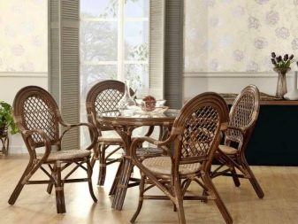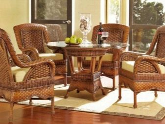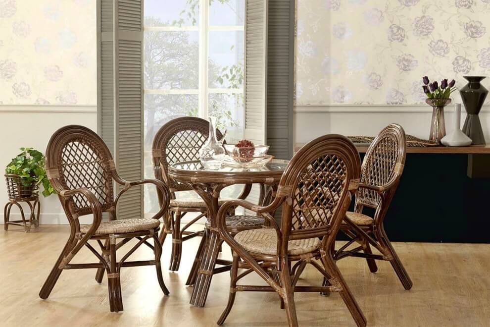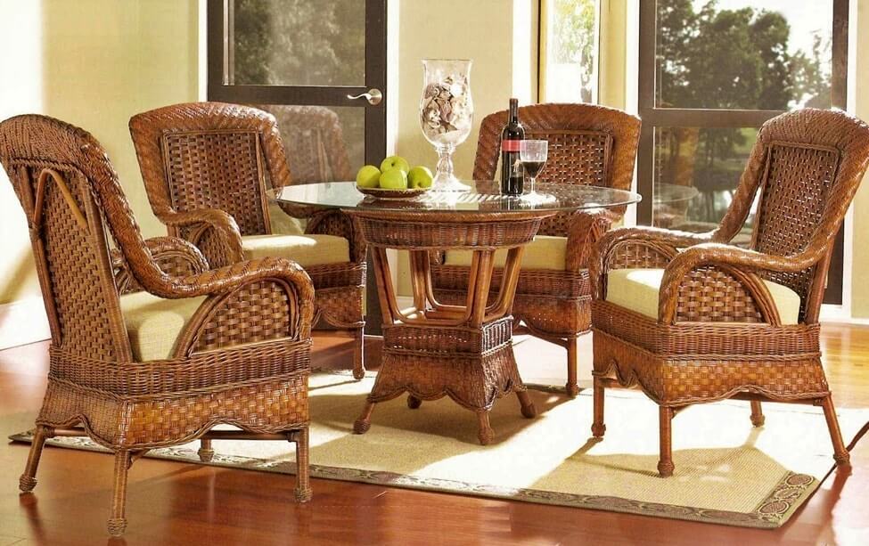 For country houses, rattan will be the perfect solution. The furniture from it gives a cosiness and special chic. Such material is environmentally friendly with high strength. The only drawback of rattan is its need for periodic reading from accumulated dirt, as well as small crumbs in the net structure of rattan linen.