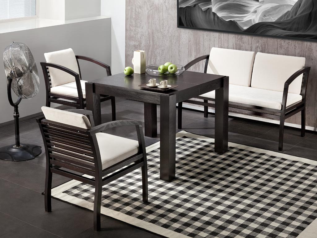 - Classical wooden model with armrests, and also a skin back and sitting. This chair fits almost any kitchen and is truly its decoration.